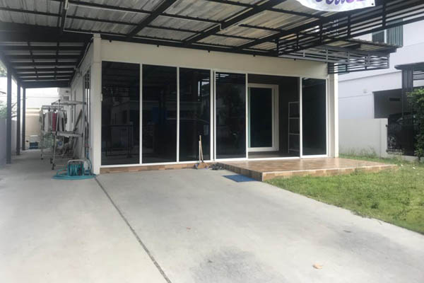 บ้านต่อเติมครัวหลังคาด้านหลัง และด้านหน้าต่อเติมหลังคาโรงจอดรถ แอร์ 4 ตัว